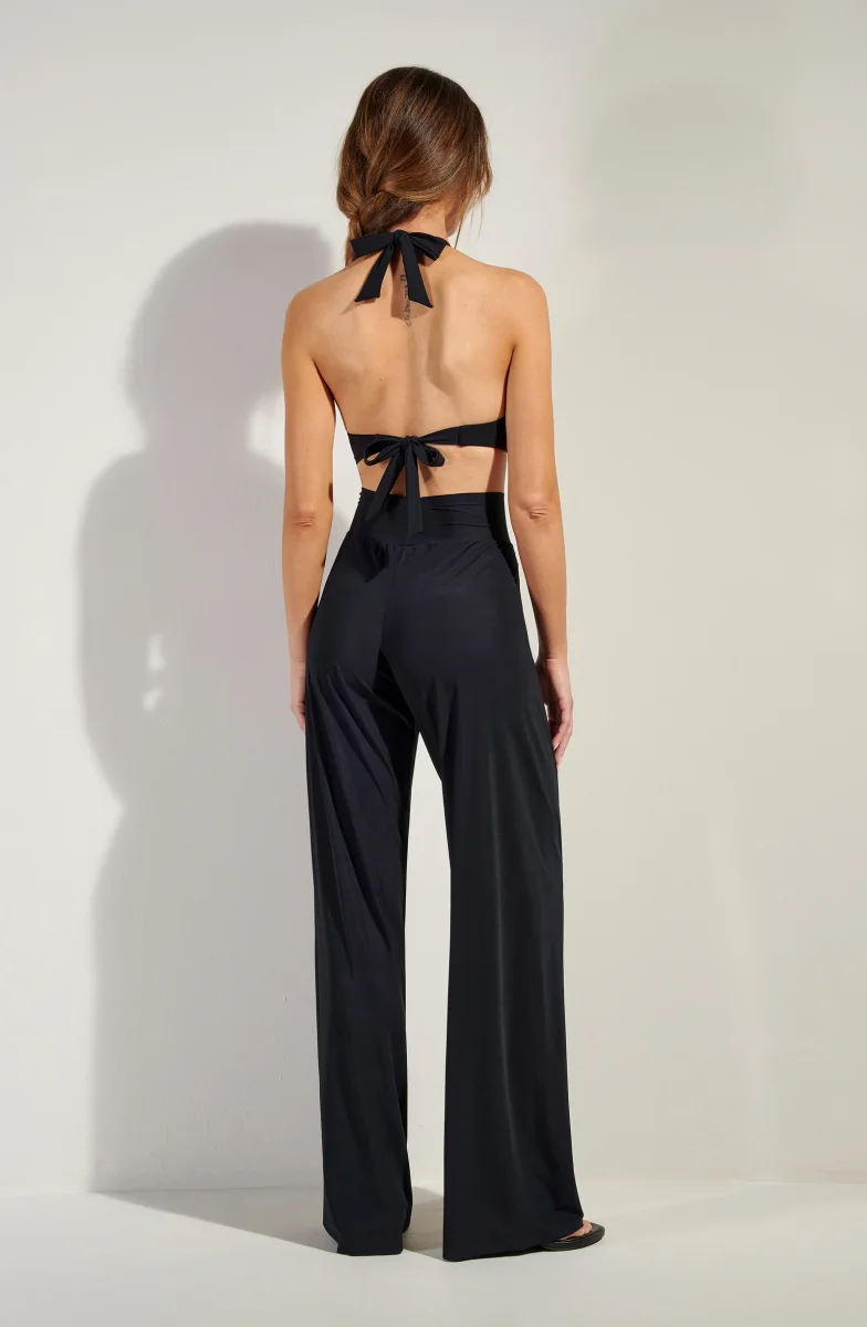 The ANNAE bikini top gently hugs the curves. Its wide triangles elegantly drape around a silver zamac jewelry piece. A refined pairing that energizes the décolletage.