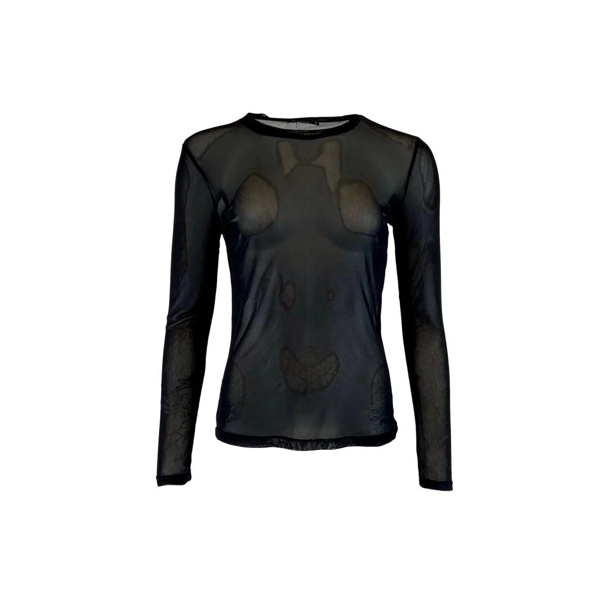Mjuk meshblus i svart som blir den perfekta layering-basen för alla dina outfits. Den lätt transparenta kvaliteten i polyester och elastan ger en elegant effekt samtidigt som den känns luftig och bekväm mot huden.