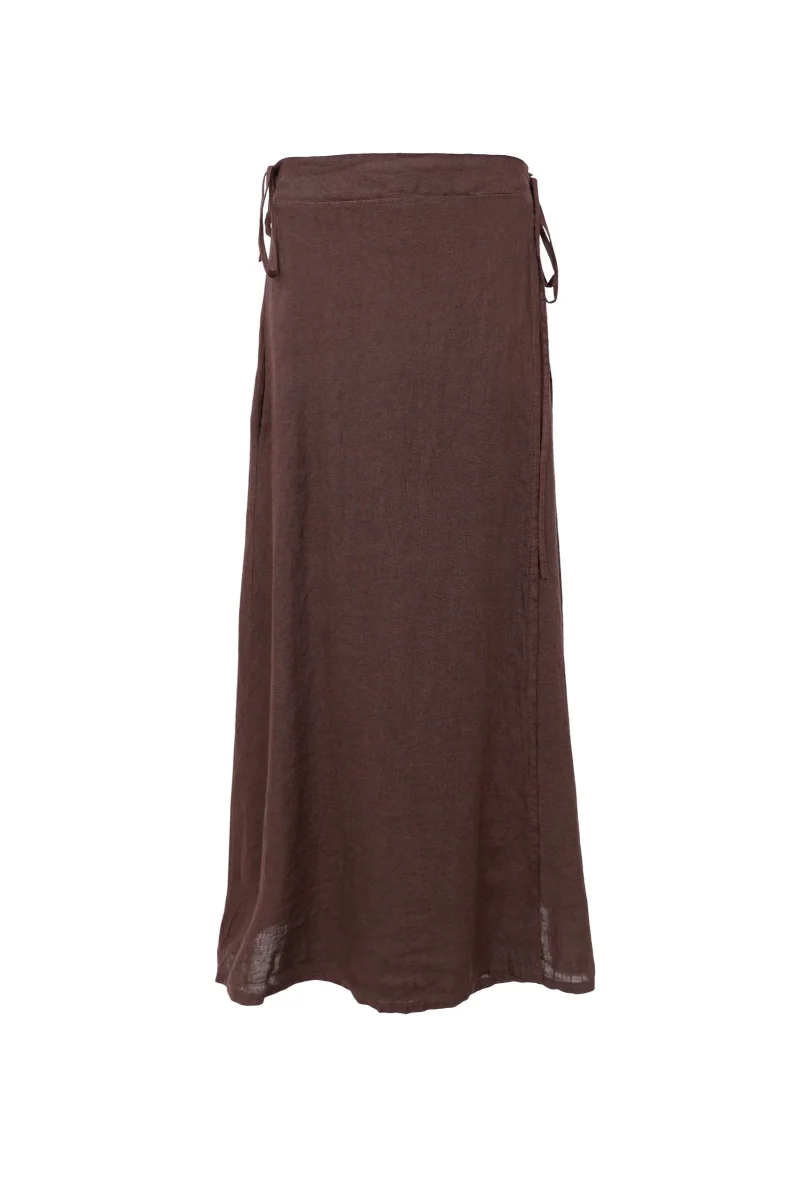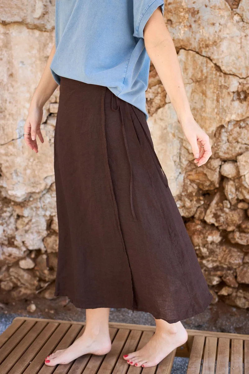 Kjol i omlottmodell tillverkad i 100% linne med avslappnad passform. Omlottdesignen skapar en naturlig drapering som följer kroppens rörelser.