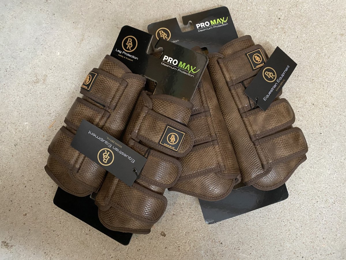 Funktionella benskydd med ödlemönster, alpacka brun.