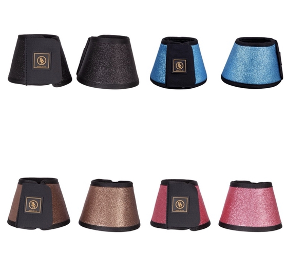 Over reach boots made from glitter polyurethane. The over reach boots feature a wide, double Velcro closure. Over reach boots serve to prevent the horse from wounding itself by overstressing its heels or the back of the frogs.