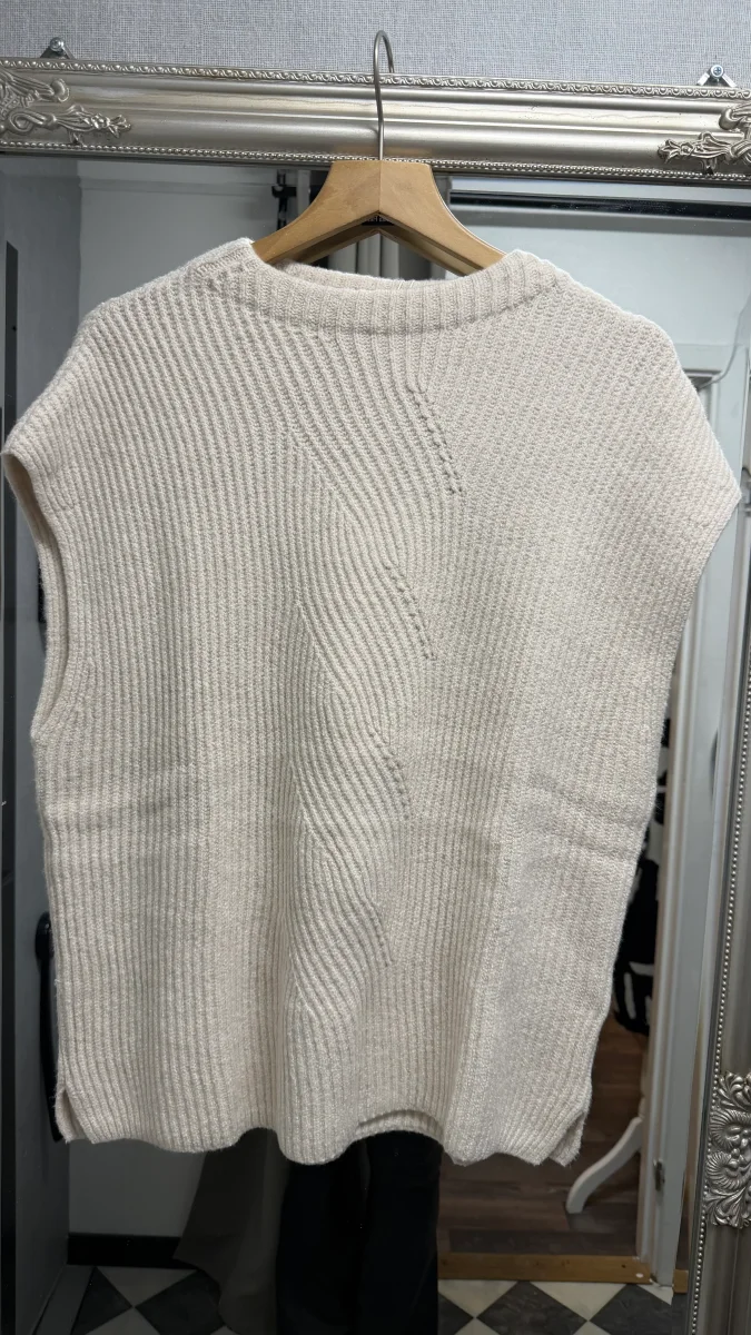 Mjuk stickad väst med flätmönster som blir din nya favorit för layering. Tidlös design som lyfter både vardags- och festoutfits med sin eleganta struktur och bekväma passform.