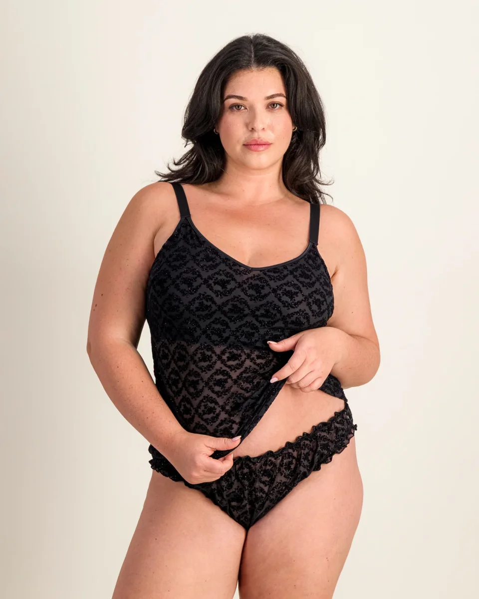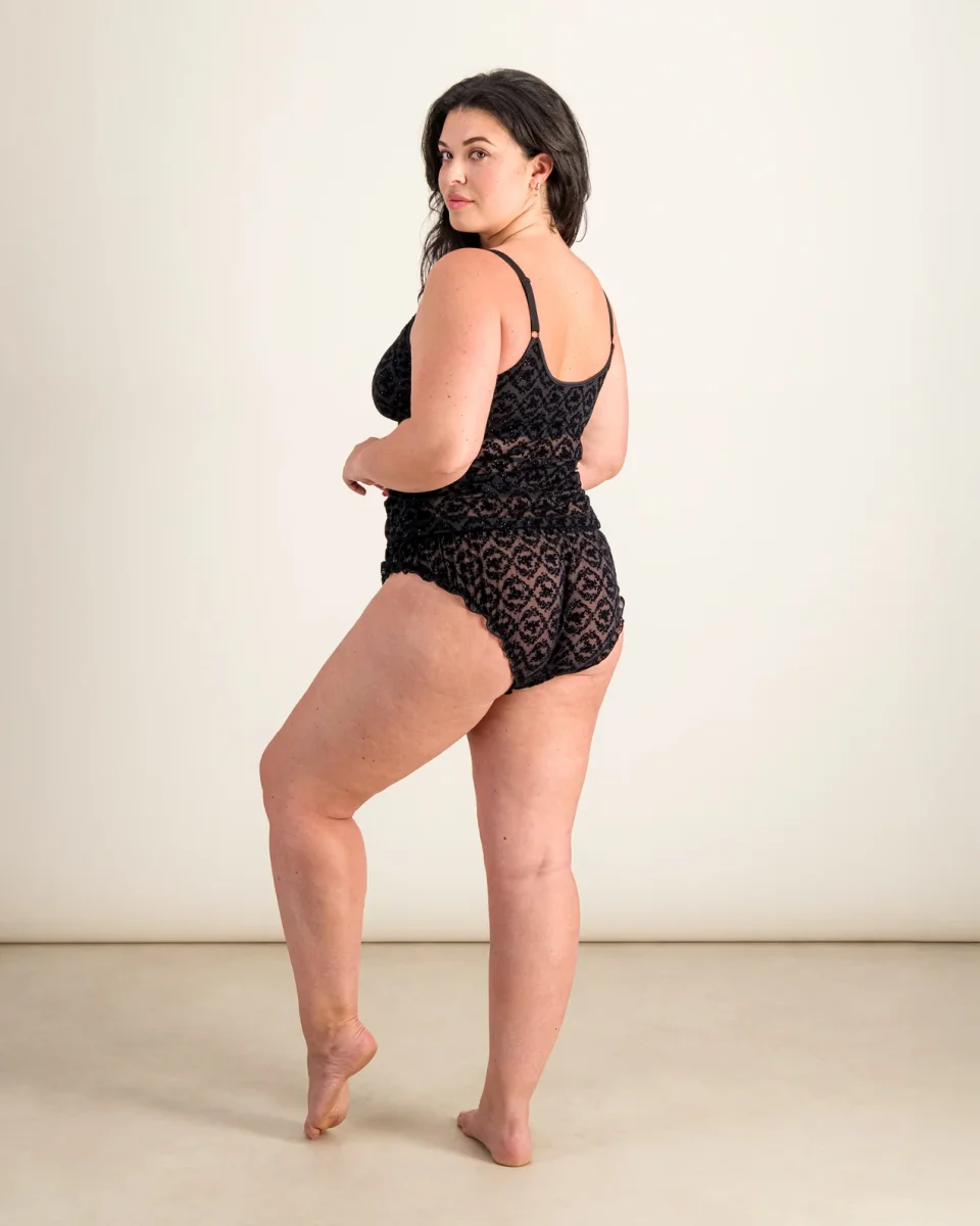 • Culotte bouffante en dentelle pailletée semi transparente
