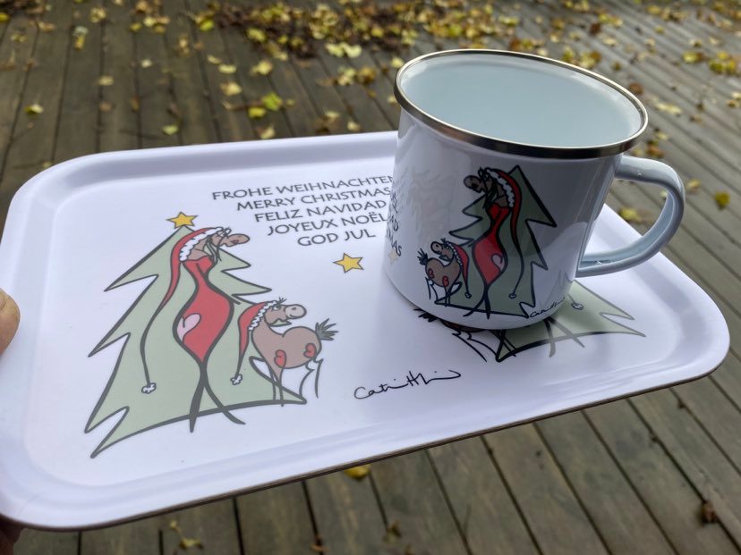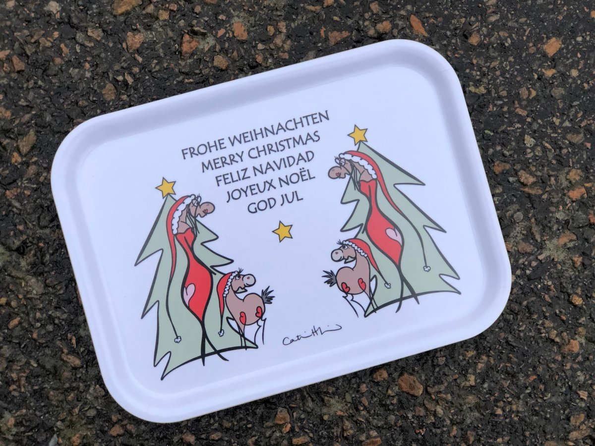 Svenskdesign när den är som bäst. Vit serveringsbricka med ett ordspråk/citat samt ett motiv som Catrin Henriksson har tecknat.