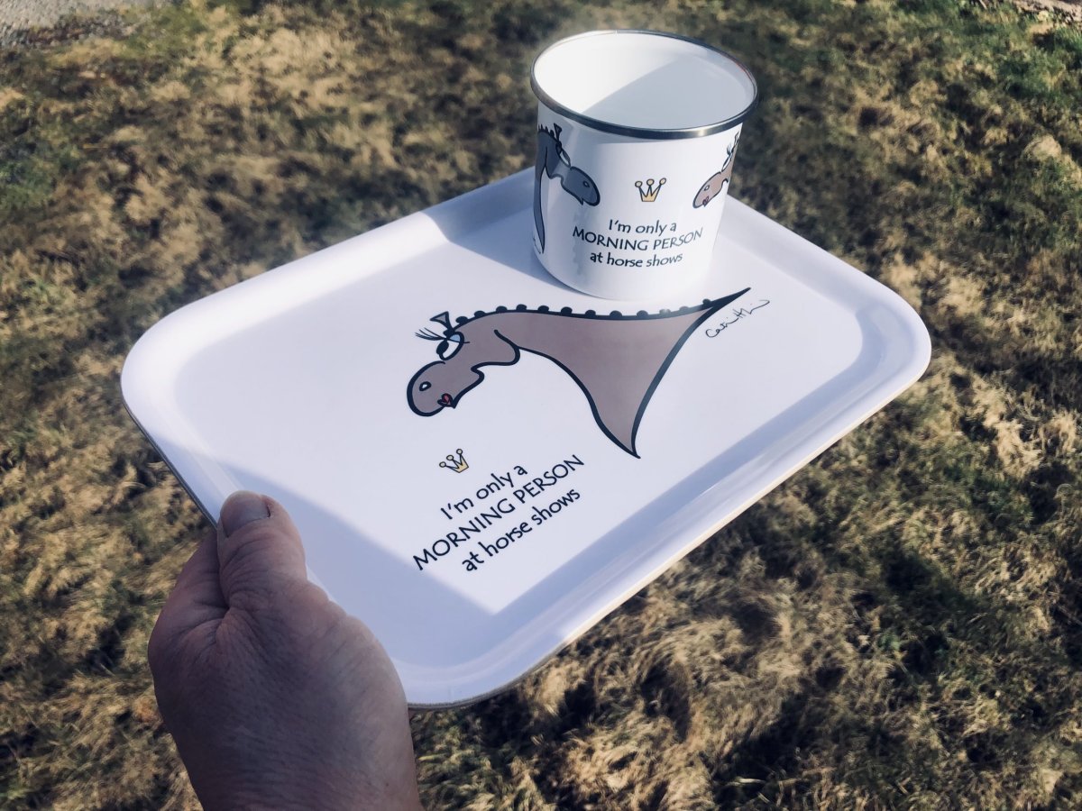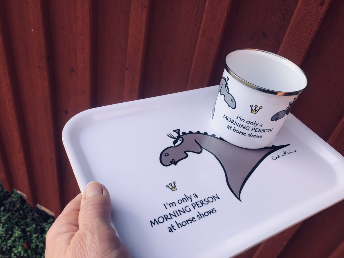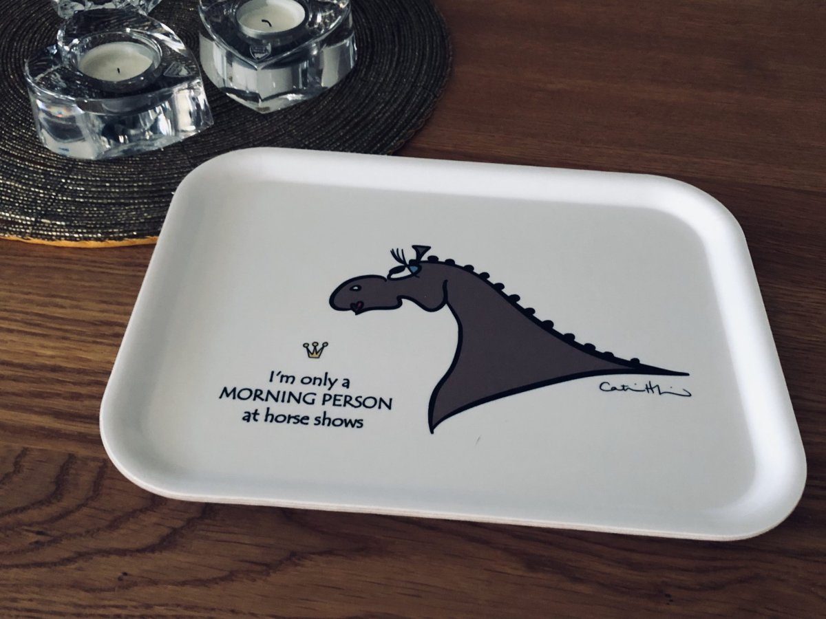 Svenskdesign när den är som bäst. Vit serveringsbricka med ett ordspråk/citat samt ett motiv som Catrin Henriksson har tecknat.