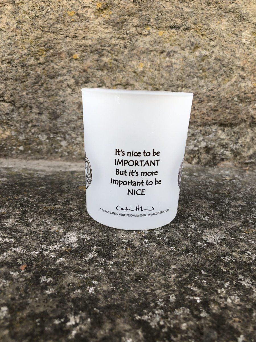 Stämningsfylld ljuslykta för värmeljus. Ett ordspråk/citat samt ett motiv som Catrin Henriksson har tecknat.