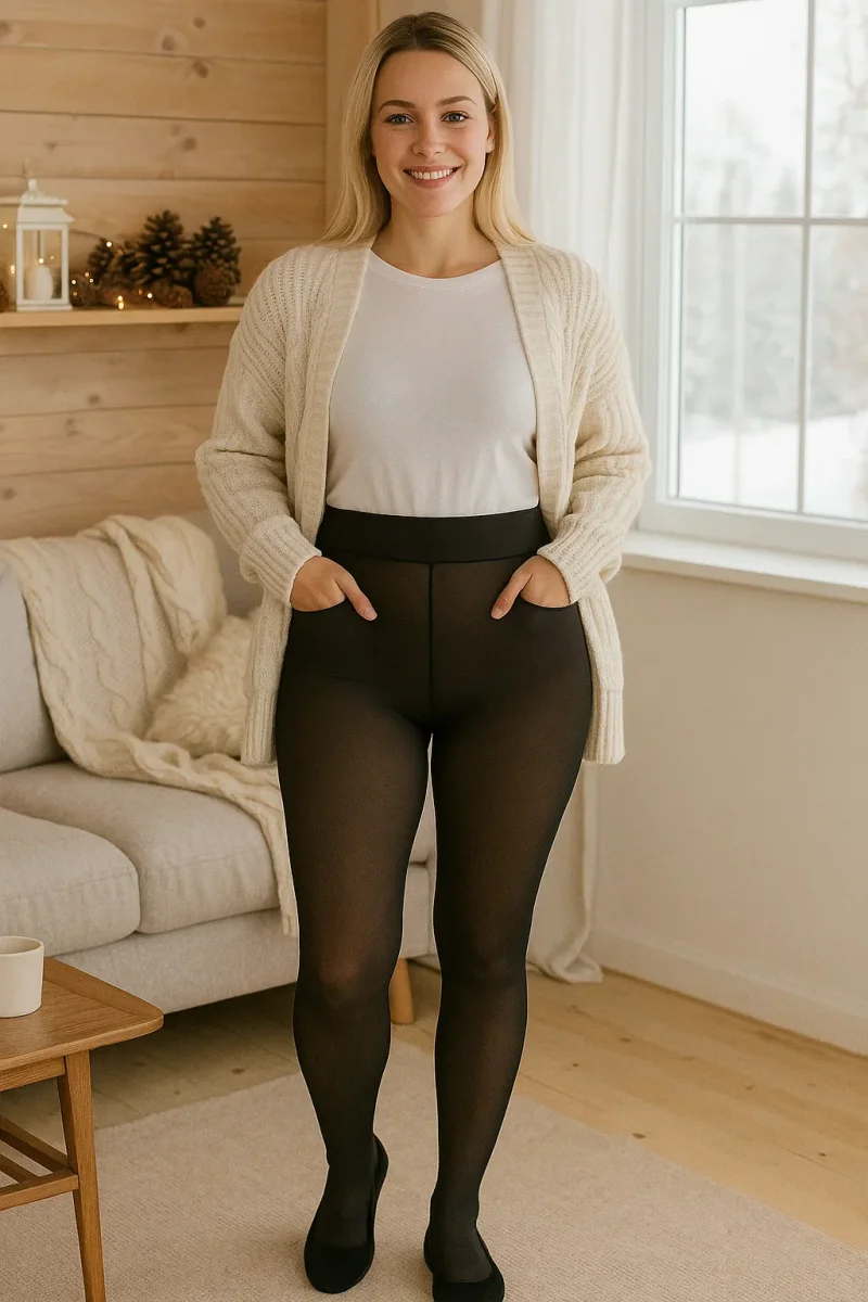 Mjuka och värmande fodrade strumpbyxor i plus size – perfekta för kalla dagar! Dessa smarta strumpbyxor från Caramelle Fashion har en lyxig, borstad insida som håller dig varm samtidigt som de ser ut som tunna, eleganta nylonstrumpor i nylon.