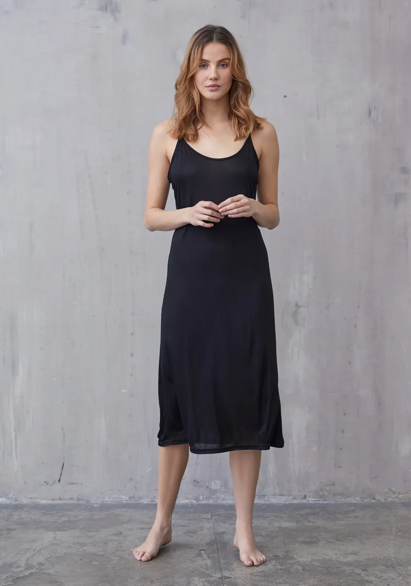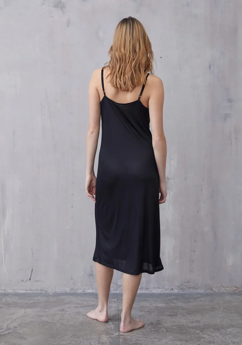 Silkeslen känsla möter sömlös komfort i denna smickrande underklänning. Med justerbara axelband och en lätt kroppsnära passform som följer figuren på ett naturligt sätt, blir den din räddning under genomskinliga klänningar och kjolar.