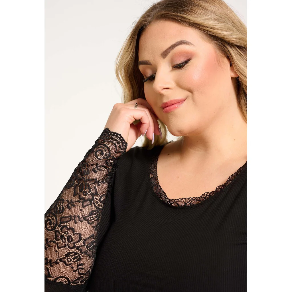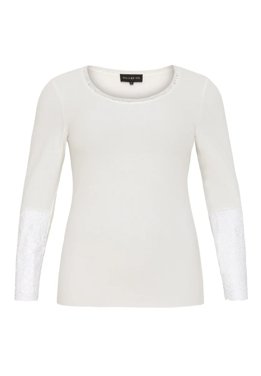Romantiska spetsärmar träffar klassisk jersey i denna feminina topp som lyfter vardagsstilen till nästa nivå. Mjuk komfort möter eleganta detaljer i en kombination som fungerar lika bra till jeans som till en kjol.