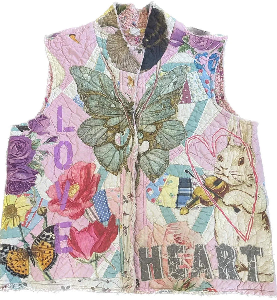 Specialty Quiltwork Joan Of Arc Vest with Rabbit & Insect Applique, Hand Distressing