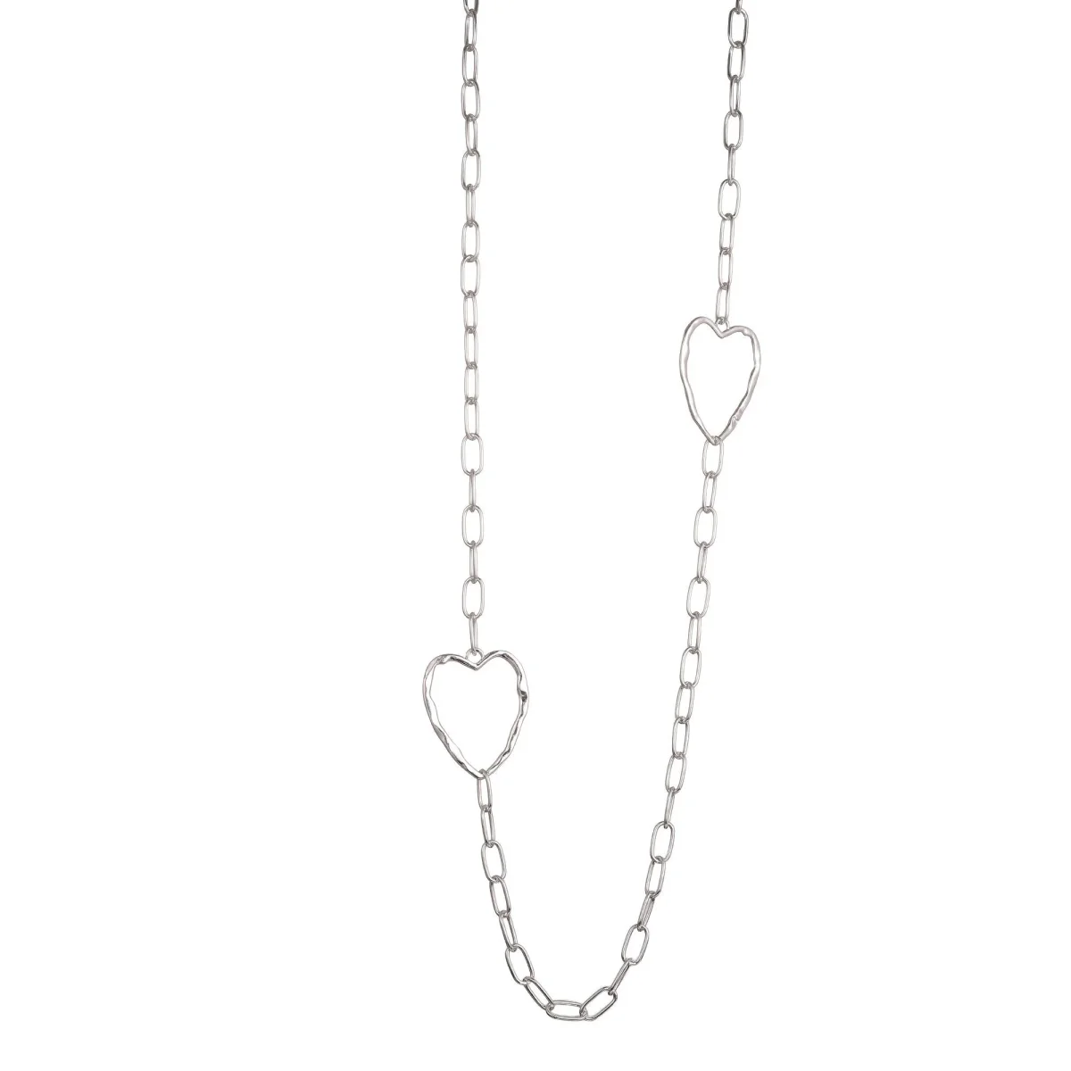 Långt halsband med kedjelänkar som bryts av med öppna hjärtformer placerade längs kedjan. Konstruktionen i stål ger en stilren finish med hjärtdetaljer som skapar visuell variation.