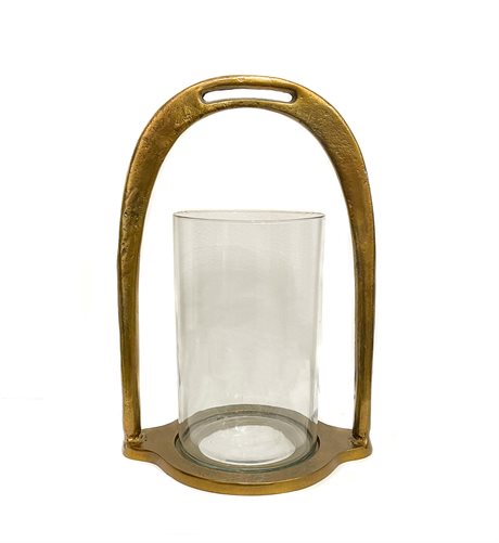 Stämningshöjande silverfärgad ljuslykta/vas med stigbygel och kupa.