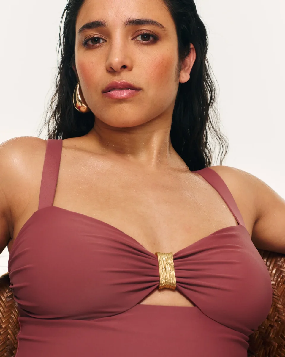 • Bijou doré à la poitrine amovible et résistant à l’eau (à retirer lors du lavage)