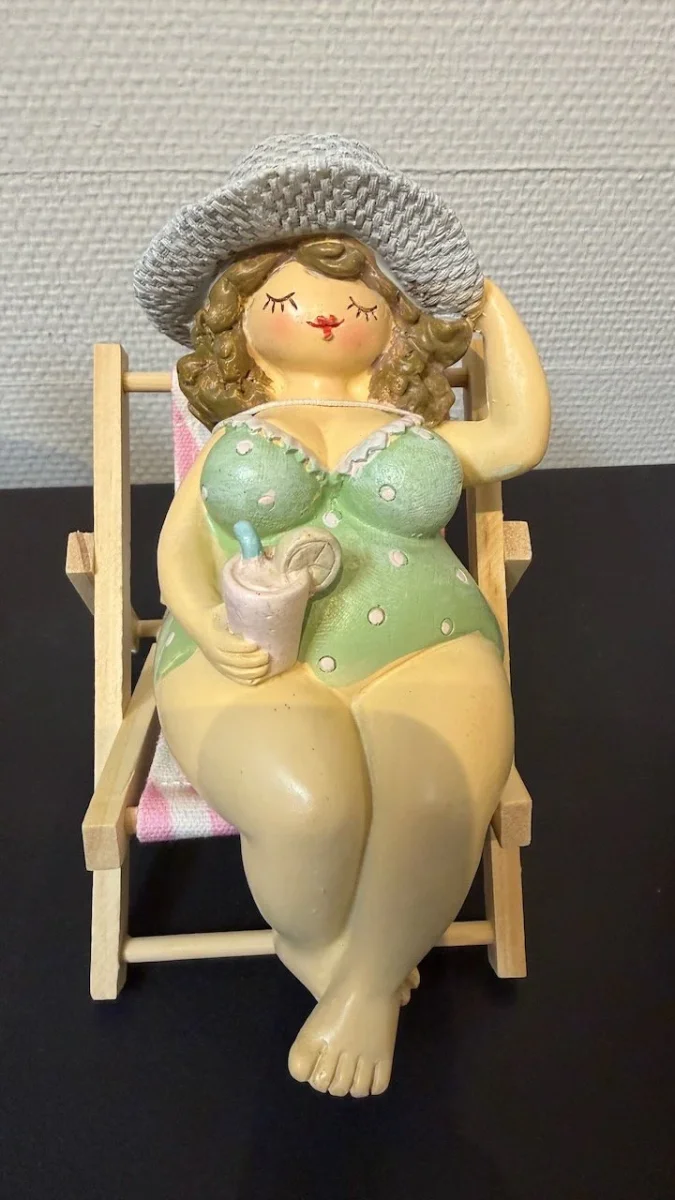 En charmig dekorationsfigur som för tankarna till varma sommardagar vid stranden. Malin i strandstolen sprider genast en avslappnad och glad atmosfär i ditt hem.