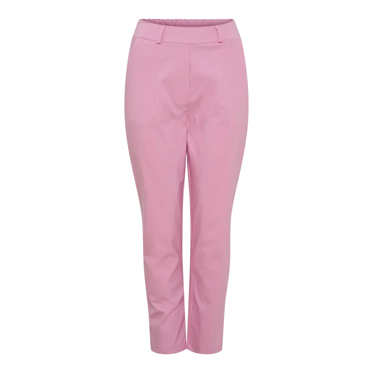 Byxor med elastisk midja och raka ben i mjukt material. Fickor fram och bak, samt en ren design utan extra detaljer. Materialet har en mjuk textur och faller naturligt längs benen.