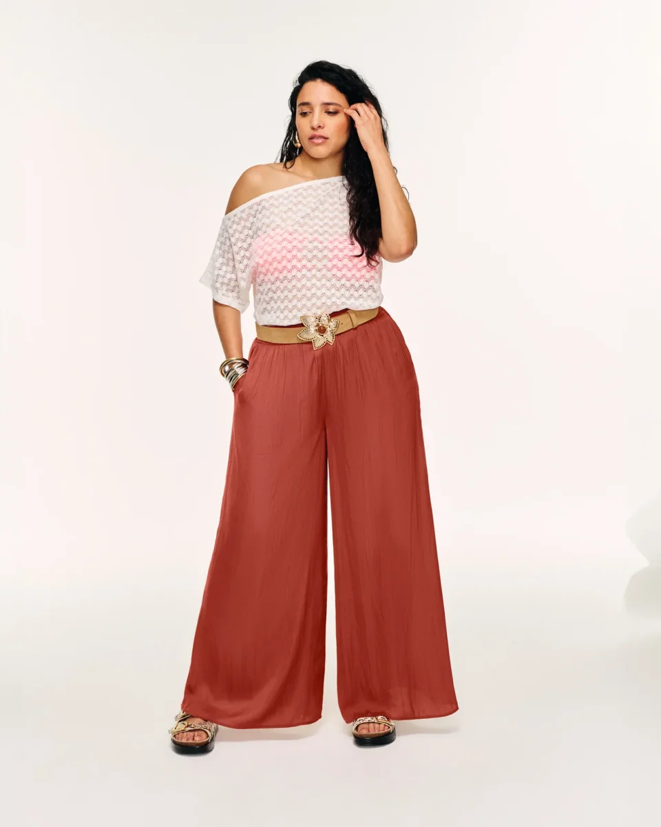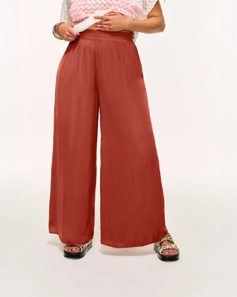 • Pantalon fluide• Jambes larges palazzo• Taille élastiquée• Poches côtés