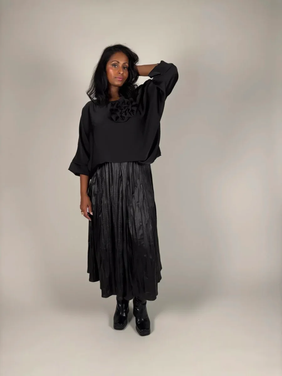Den avslappnade passformen och det följsamma materialet ger både komfort och smickrande silhuett. Perfekt att matcha med kjol eller byxor för en festlig look, eller styla med jeans för en mer avslappnad men ändå elegant outfit.