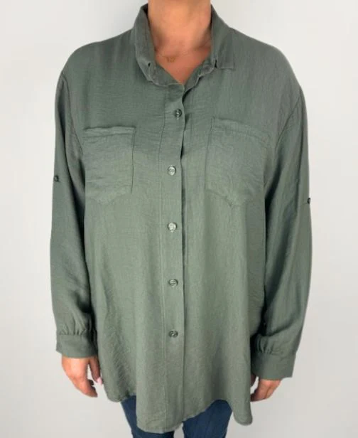 Bekväm skjortblus i snygg khakigrön nyans som blir lika fin till jeans som till kostymbyxor. Den lediga passformen och mjuka bomullsblandningen gör den perfekt för långa arbetsdagar eller avslappnade helger.