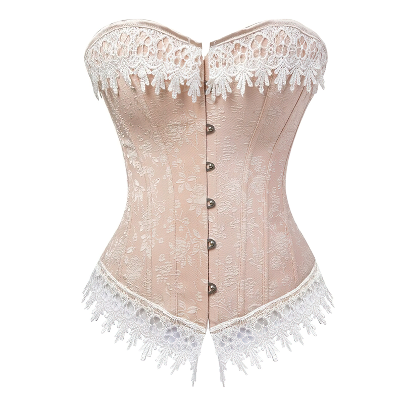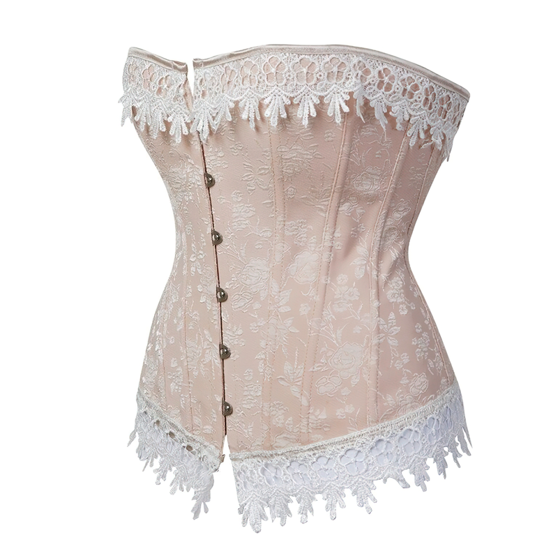 Unna dig en vintage-look genom att bära den här korsettbussen. Den är dekorerad med blomstermotiv överallt och snöre och ger dig en riktig getingmidja. På framsidan finns en metallbussning och på baksidan finns en snörning.