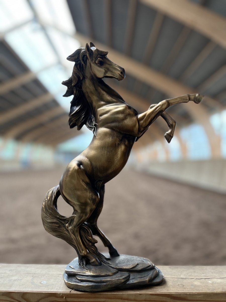 Snygg prydnadshäst i guldfärgad polyesin.