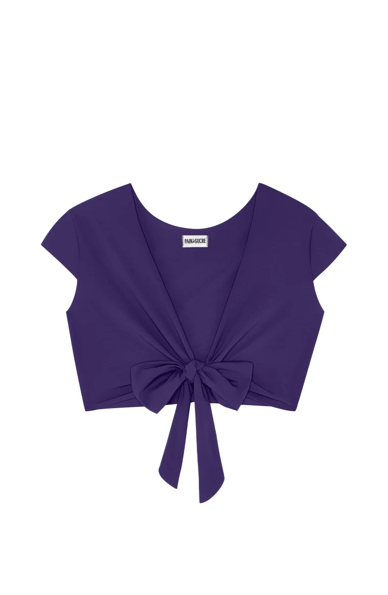 The wrap crop top TAKO mixes comfort and elegance. A fitted cut and light sleeves on the shoulders protect your skin from the sun. It can be tied in different ways according to your wishes, at the front or the back. This top will highlight the most beautiful necklines. Purple, a subtle yet bold shade, in deep indigo hues.