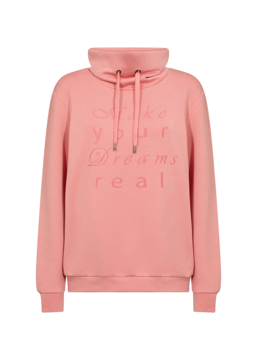 Tröja SC-BANU 217 är en bekväm sweatshirt som är tillverkad i en mjuk blandning av 48% Modal, 48% Polyester, 4% Elastan. Den här avslappnade tröjan har en justerbar huva med dragsko, muddar och fåll i samma material och ett motiverande texttryck på framsidan. Kombinera den med dina favoritjeans och sneakers för en avslappnad dag ute eller med sweatpants för en mysig dag inne.