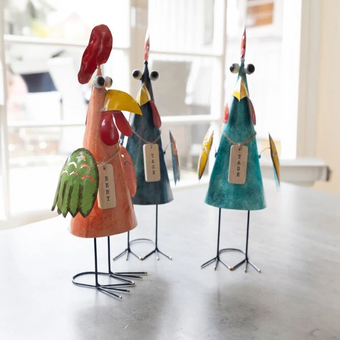 Färgglada karaktärer med personlighet tar plats i ditt hem eller trädgård. Dessa charmiga tuppar i hamrad plåt erbjuder ett lekfullt sätt att skapa atmosfär och sprida glädje var de än placeras.